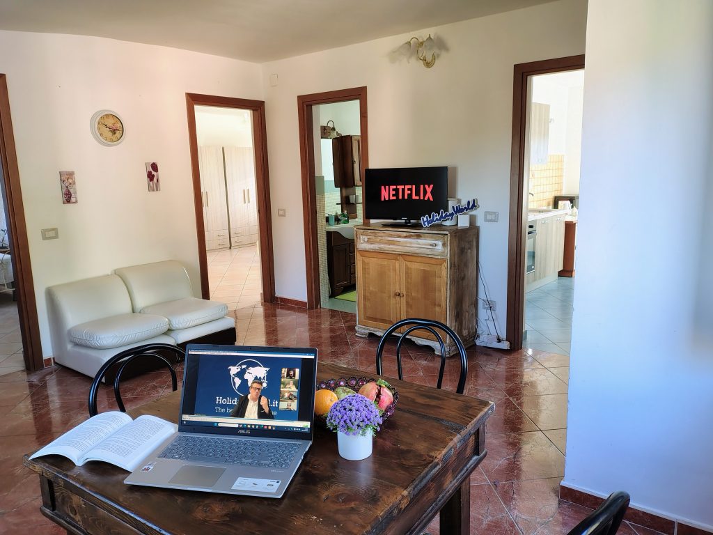 L’appartamento non dispone di aria condizionata, ma le pareti spesse e la posizione collinare assicurano un clima naturalmente fresco e ventilato anche d’estate. La connessione internet in fibra ottica Wind con Wi-Fi ad alta velocità permette di lavorare da remoto o navigare in tutta tranquillità.