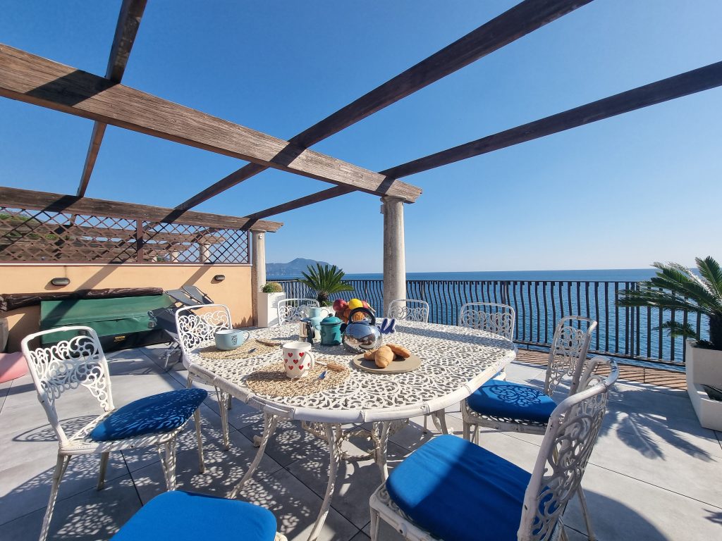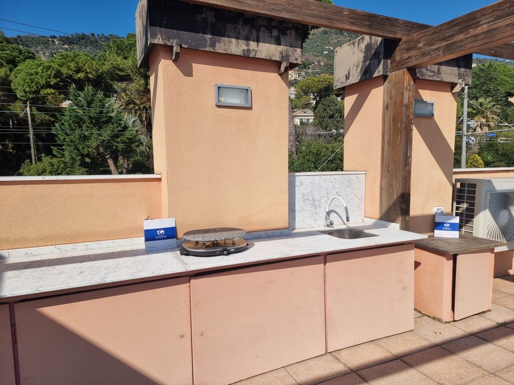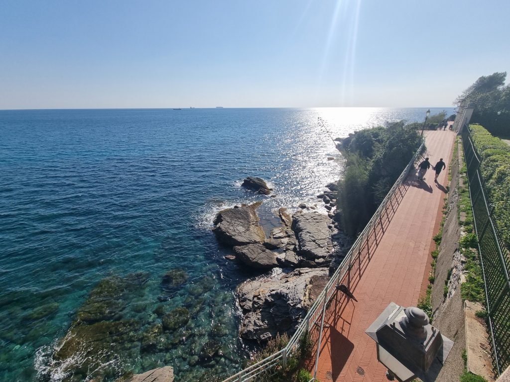 Situato direttamente sulla rinomata Passeggiata Anita Garibaldi, questo attico all’ultimo piano offre un’esperienza rara: vivere sospesi tra l’azzurro e la costa ligure.