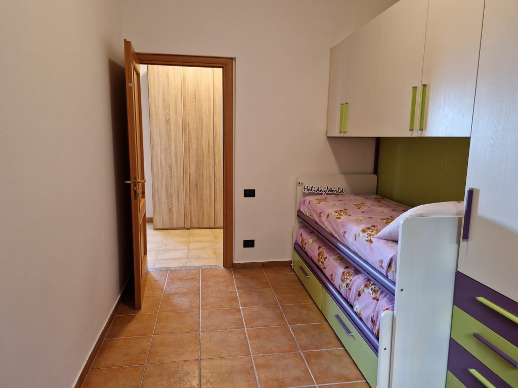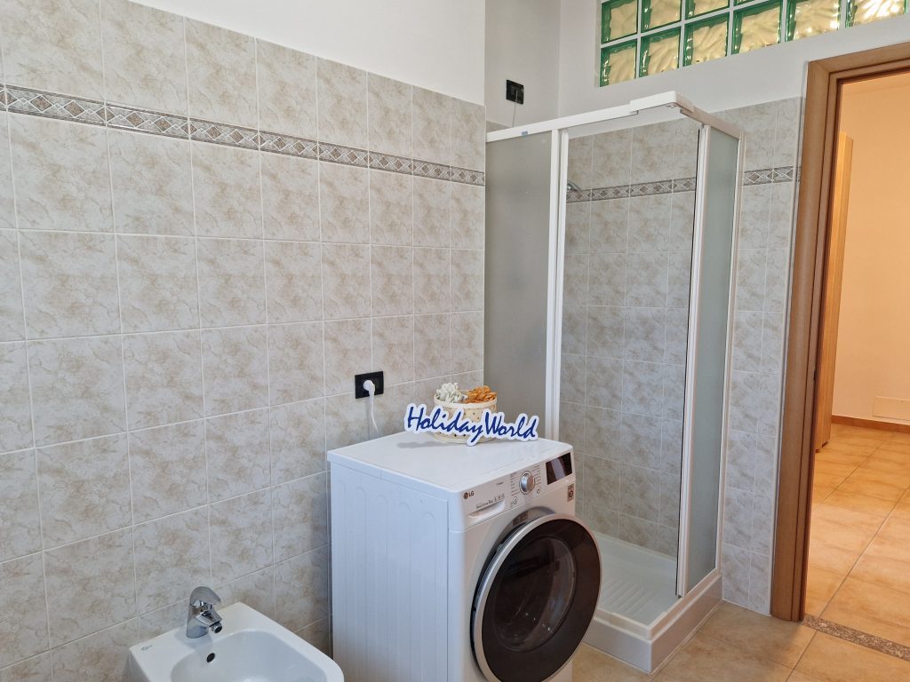 La zona notte comprende due camere da letto, una matrimoniale e una doppia, entrambe ampie e luminose, che garantiscono un riposo piacevole. Il soggiorno è un ambiente accogliente che si apre direttamente su una splendida terrazza panoramica. La cucina, separata e completamente attrezzata, è perfetta per chi ama preparare i propri pasti in totale comodità, mentre il bagno è spazioso e dotato di doccia e lavatrice. Una connessione Wi-Fi gratuita è disponibile in tutta la casa.
