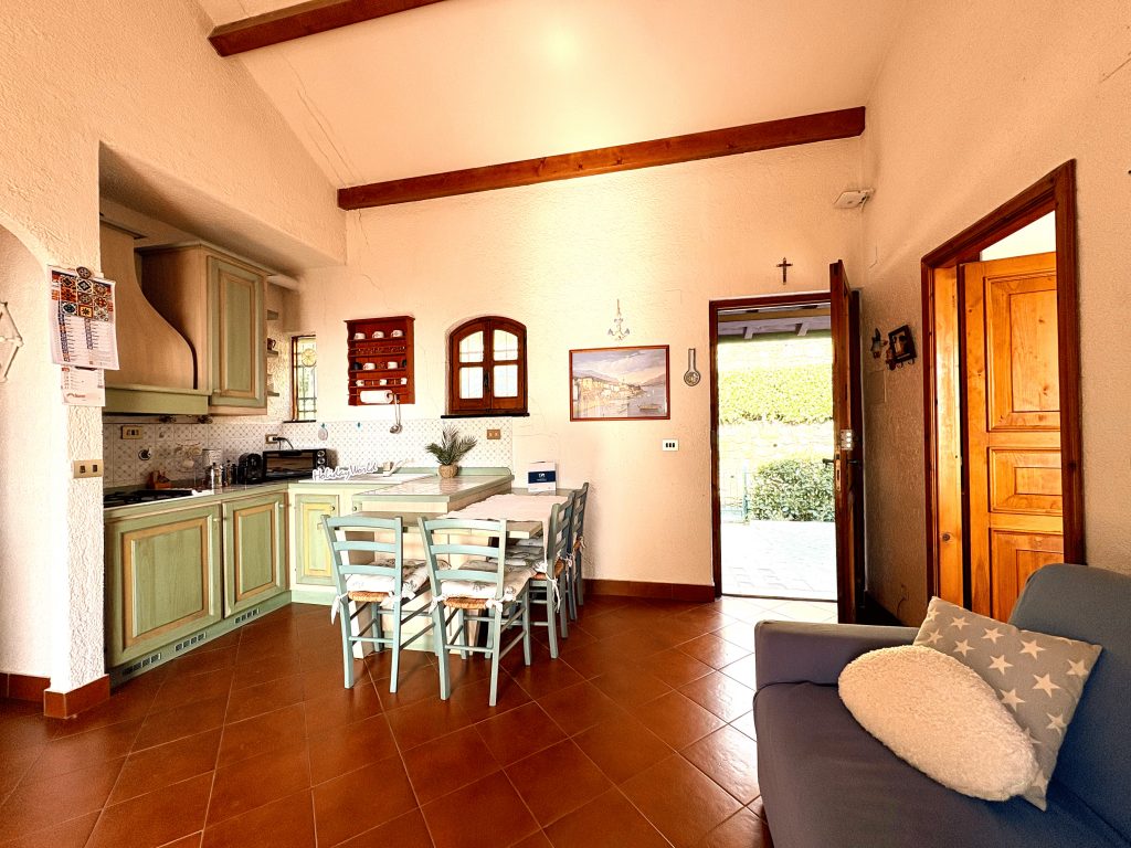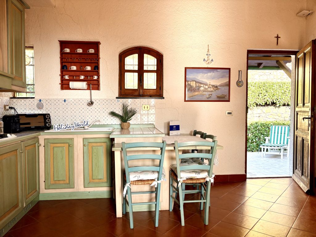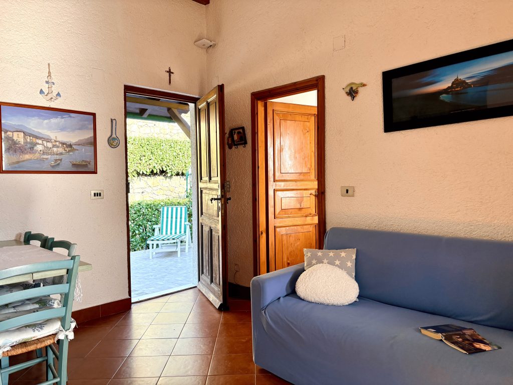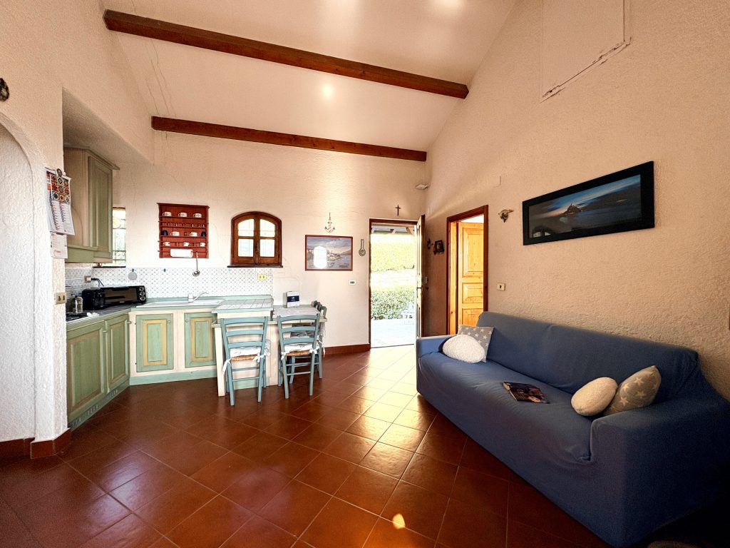 Casa Il Salice si apre su un luminoso soggiorno con angolo cottura, uno spazio accogliente e funzionale con accesso a un ampio balcone, dal quale si gode una piacevole vista aperta sul verde con scorci di mare. L’ambiente è arricchito dalla presenza di un comodo divano letto.