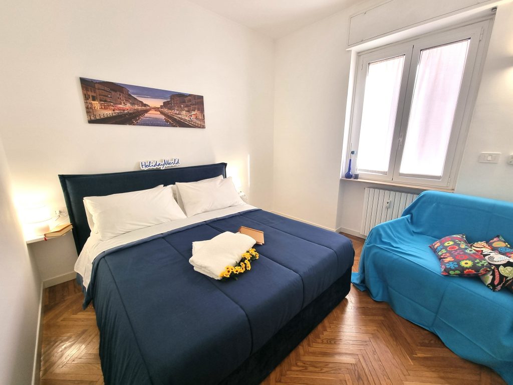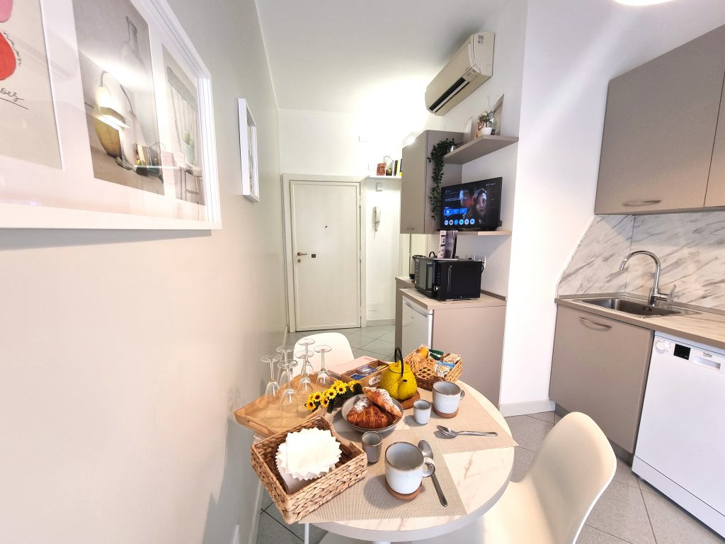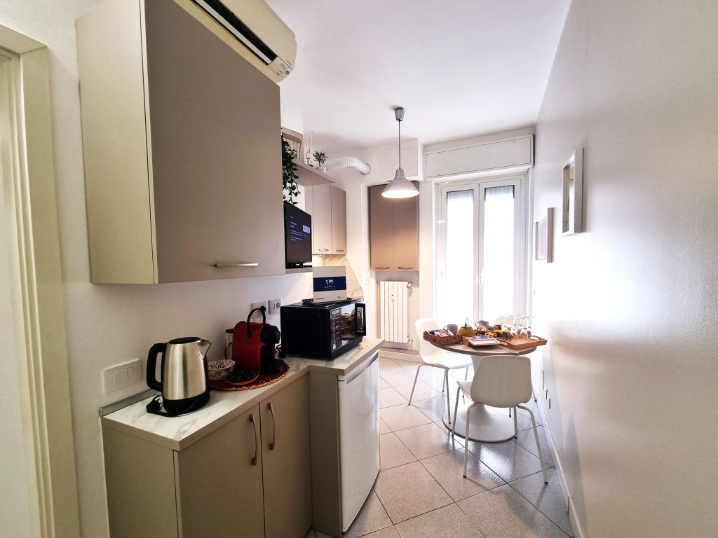 Gin Gin House è un accogliente appartamento situato a Milano, al primo piano di un edificio dotato di ascensore. All’ingresso si accede direttamente alla zona giorno/pranzo, che comprende un angolo cottura moderno. L’ambiente è arredato con un tavolo da pranzo e offre accesso a un piccolo balcone. La zona notte è separata dalla zona giorno da un breve corridoio, dove si trova un armadio a muro con ante a specchio. Il bagno, finestrato, è dotato di vasca ad uso doccia. La camera matrimoniale è spaziosa e dispone sia di un armadio che di una cabina armadio attrezzata. È presente, inoltre, una poltrona trasformabile in letto, ideale come posto supplementare per un terzo ospite.