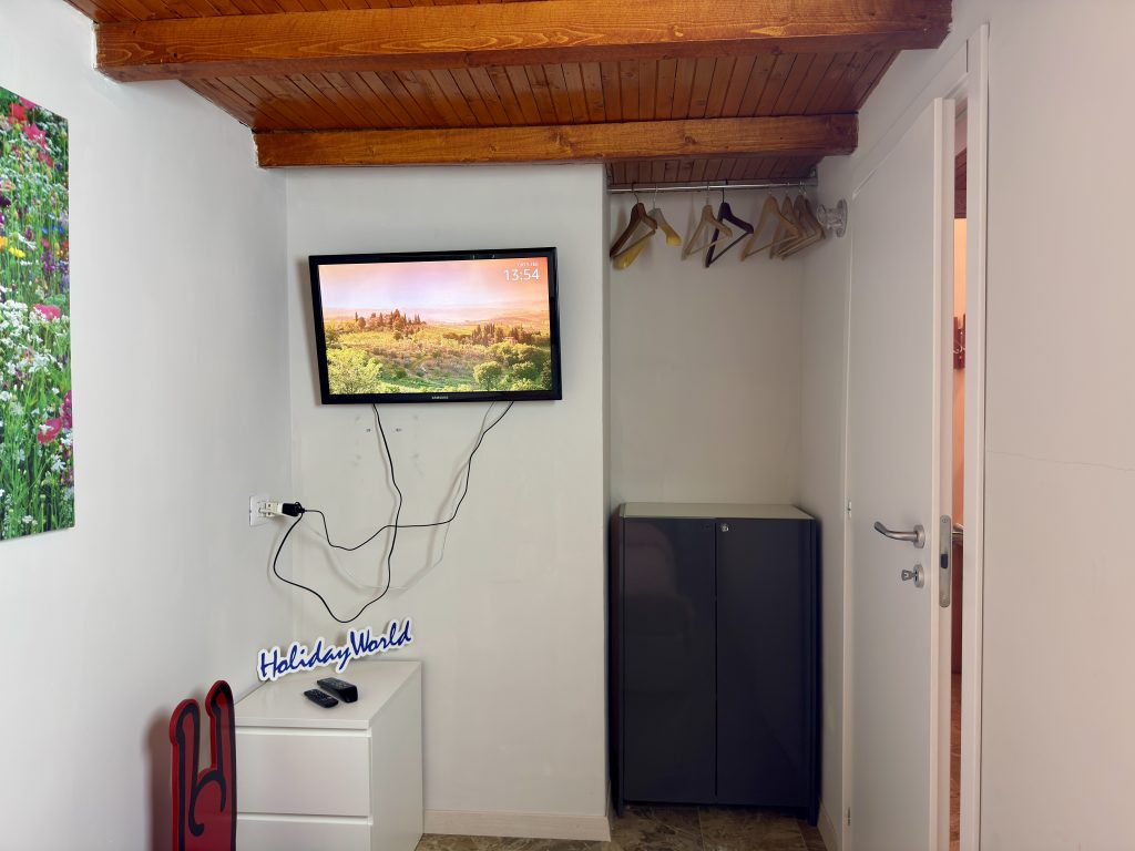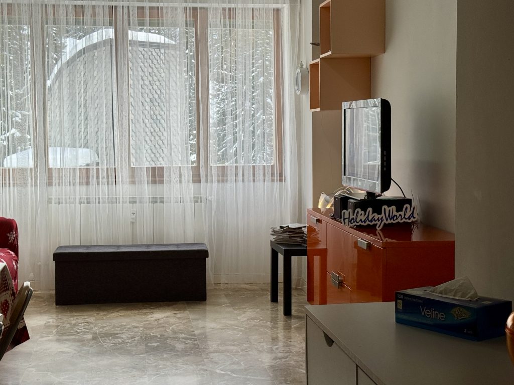 Grazioso appartamento situato a Foppolo, a 1.500 metri di altitudine, immerso nel verde durante l’estate e circondato dalla neve nella stagione invernale. L’alloggio è composto da un luminoso soggiorno con splendida vista sulla Val Brembana, arredato con divano letto e tavolo da pranzo, un cucinino ben attrezzato, un bagno privato con doccia, una cameretta singola collegata al soggiorno tramite una finestrella interna oscurabile e un soppalco con letto matrimoniale alla francese.