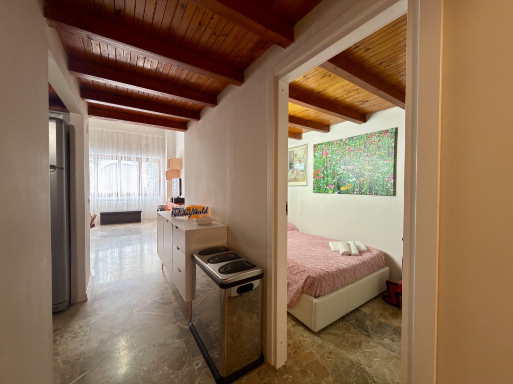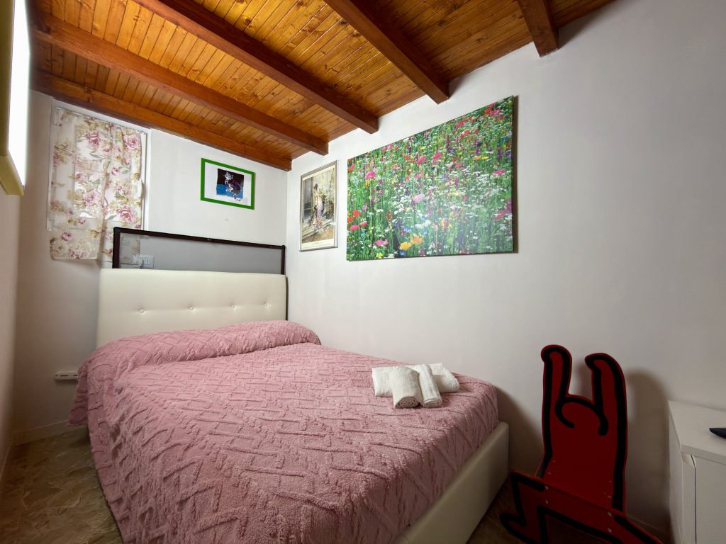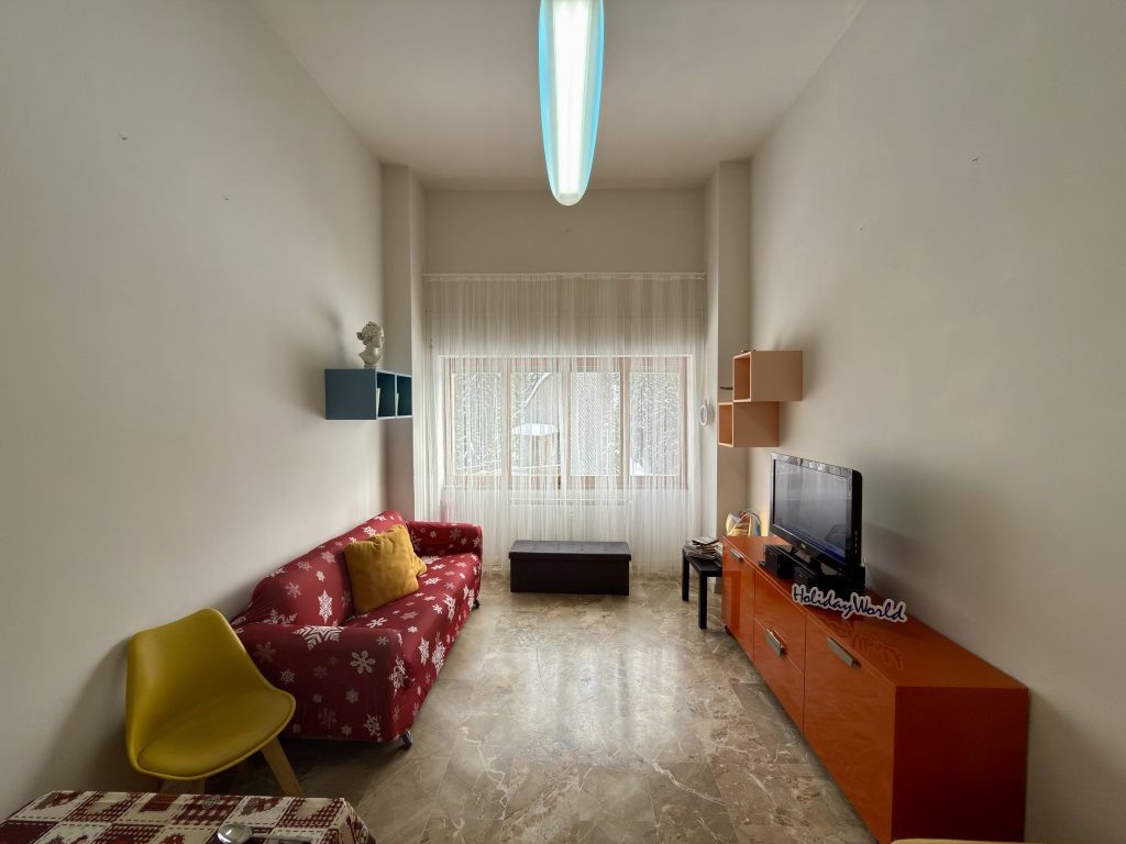 L’appartamento è prenotabile per quattro ospiti ma può ospitarne comodamente cinque, con il quinto posto letto offerto in omaggio dalla proprietà. Nelle immediate vicinanze del condominio si trovano un ampio parco giochi e un campo pubblico da tennis e calcio, entrambi liberamente accessibili.