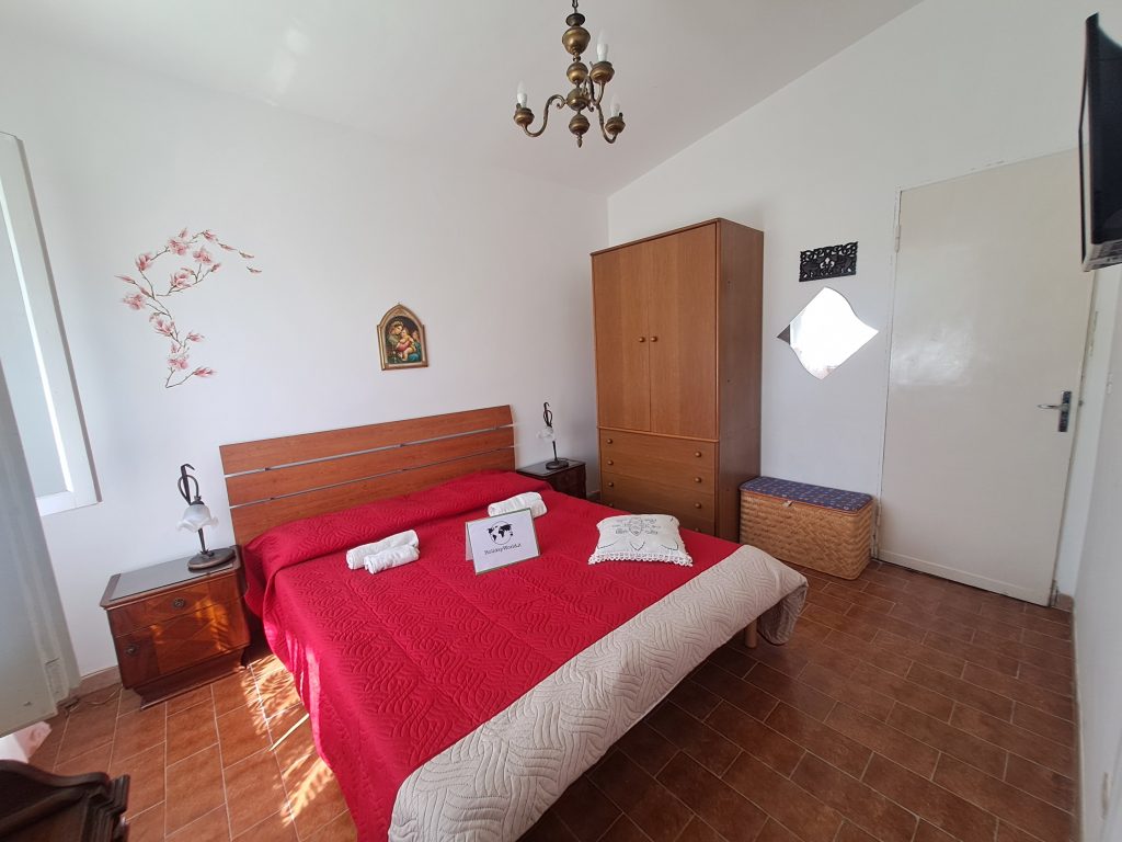 La struttura è articolata su due livelli sfalsati. Al piano terra si trova una spaziosa camera matrimoniale con angolo relax, perfetta per momenti di lettura o riposo, e un bagno esterno