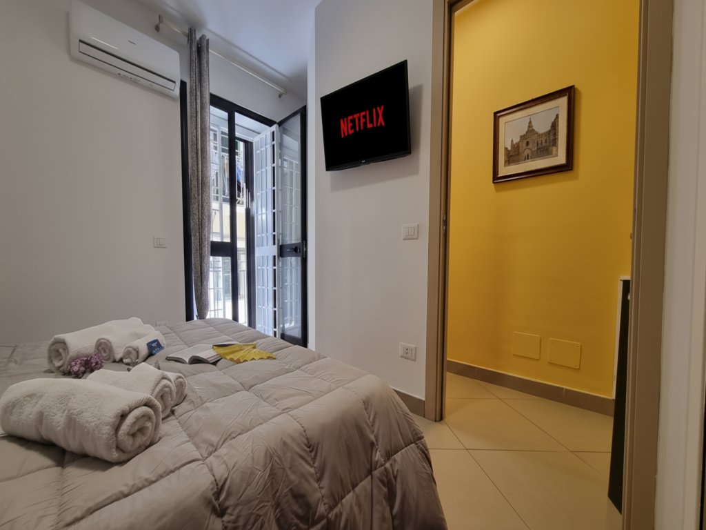 Benvenuti nel cuore autentico di Palermo, a Pruni’s Home! L’appartamento si trova al primo piano di una palazzina con ascensore. Dall’ingresso si accede all’open space con angolo cottura e soggiorno. A sinistra troviamo un bagno finestrato, con doccia e bidet. Tramite un corridoio, si accede alla zona notte; una camera da letto matrimoniale e possibilità di un letto singolo.