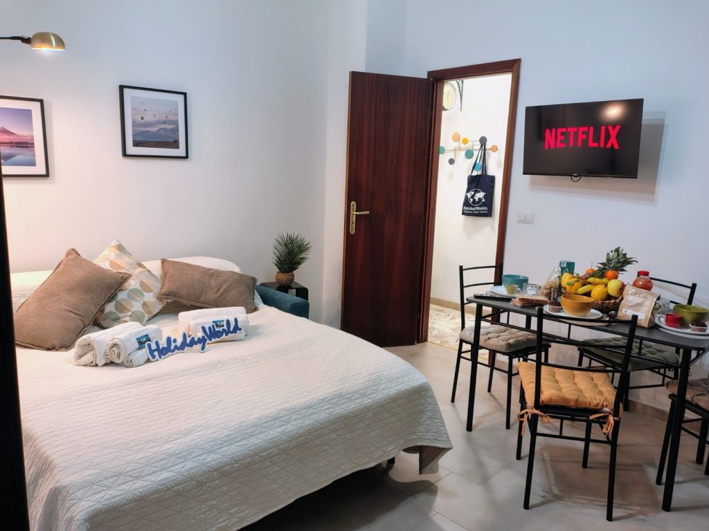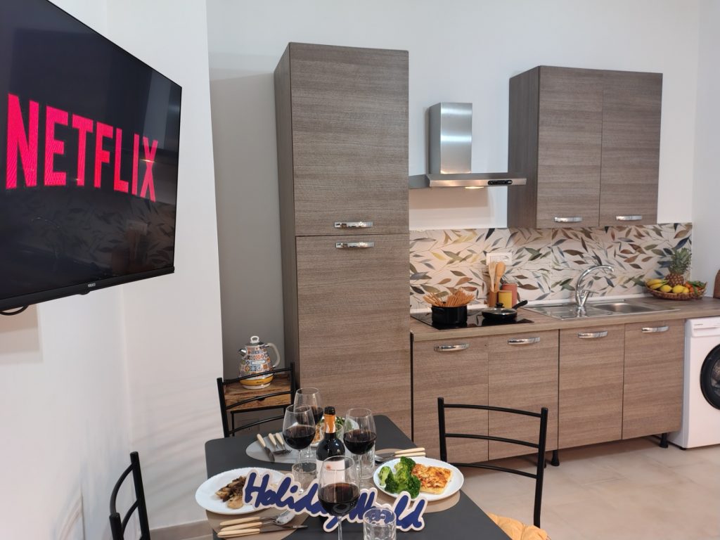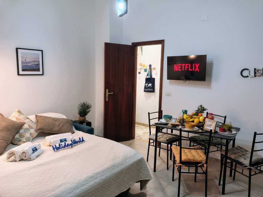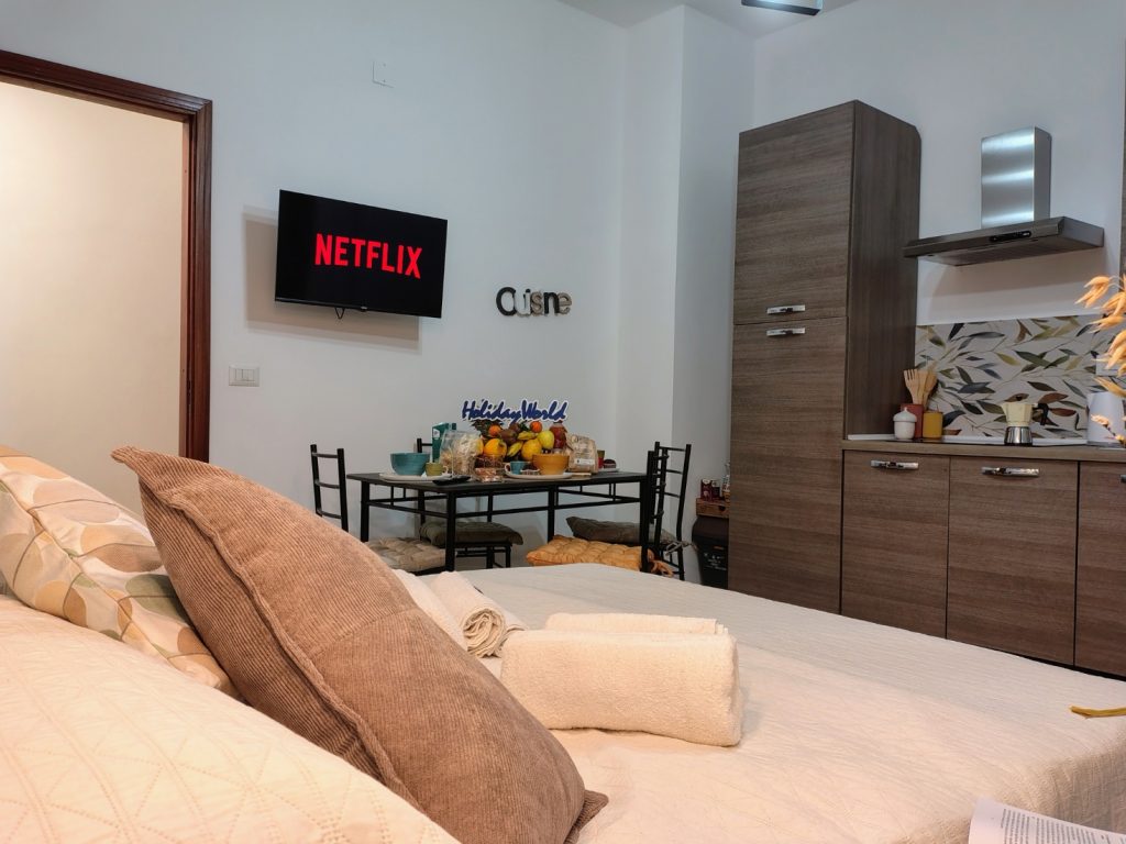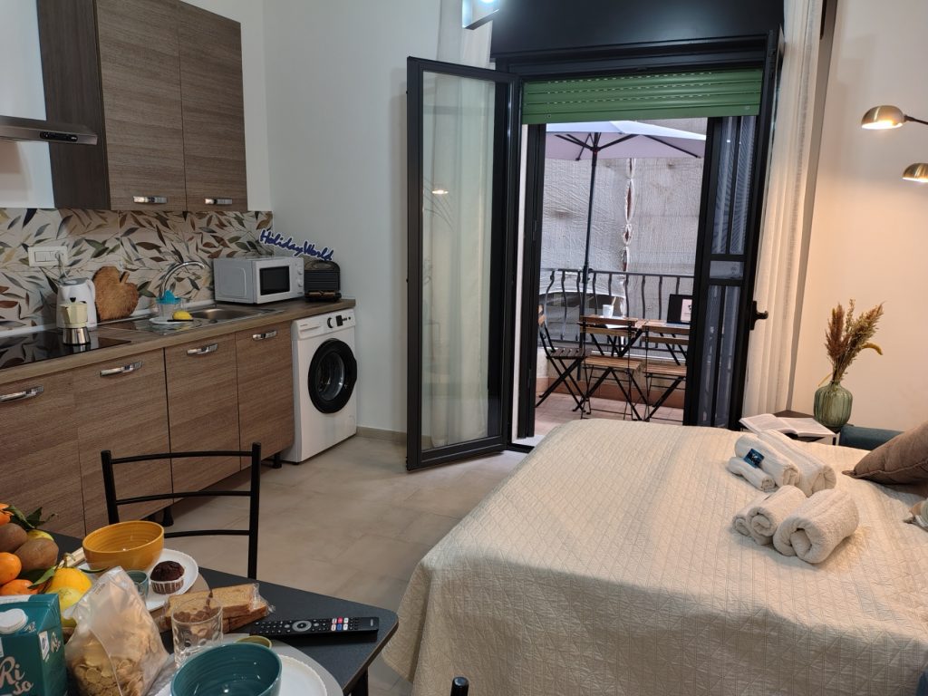 A Casa Du Cori – Messina Holiday è un comodo appartamento situato a Messina, (ME). Vi accoglie in una struttura moderna e silenziosa all’interno di un elegante palazzo con doppio ingresso. Varcata la soglia, un corridoio conduce alla luminosa zona giorno dotata di angolo cottura attrezzato, tavolo, sedie, e un comodo divano letto da cui si accede a un ampio balcone arredato. Il balcone è anche condiviso con la spaziosa camera matrimoniale, completa di armadio capiente e smart TV. Il bagno, moderno e funzionale, chiude il corridoio con doccia e bidet. La casa si trova nel cuore più autentico di Messina, una posizione davvero strategica che permette di vivere ogni angolo della città a piedi. Indichiamo infine che è disponibile un posto moto gratuito in garage.
