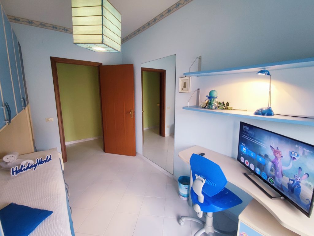 La cucina abitabile, separata dalla zona living, è funzionale e ben organizzata, arricchita da un balcone di servizio che ne aumenta la praticità. La zona notte, sapientemente distinta per assicurare privacy e tranquillità, ospita tre camere da letto adatte a diverse esigenze: una spaziosa matrimoniale con balcone privato, una seconda camera singola luminosa con finestra e una terza stanza singola che affaccia su una comoda veranda chiusa. A completare l’appartamento, due bagni – uno principale e uno di servizio – che rendono il soggiorno confortevole e ben organizzato anche per più ospiti. L’alloggio è dotato di connessione Wi-Fi veloce e lavatrice, pensati per garantire una permanenza pratica e senza rinunce. Inserito nel cuore della Sicilia occidentale, a Casa Santa di Erice, rappresenta un punto di partenza ideale per esplorare il territorio trapanese. La vicinanza alla stazione della funivia consente di raggiungere in pochi minuti il suggestivo borgo medievale di Erice Vetta, mentre il lungomare e le spiagge di Trapani sono facilmente accessibili.