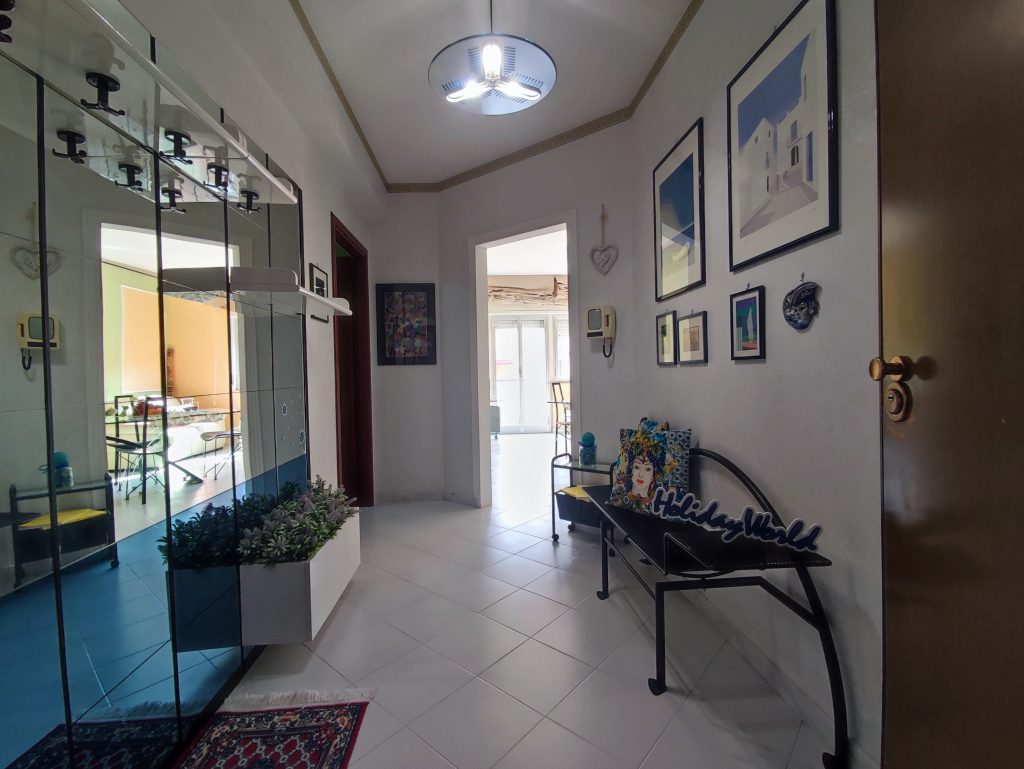 Varcando la soglia, un corridoio introduce con naturale eleganza agli ambienti principali della casa, conducendo verso un ampio soggiorno inondato di luce naturale. Questo spazio accogliente è pensato per il relax e la convivialità, ideale sia per momenti di riposo davanti alla Smart TV sia per piacevoli cene in compagnia. Dal soggiorno si accede a un balcone privato, un angolo riservato dove concedersi una pausa all’aria aperta.